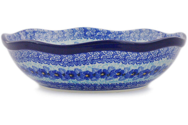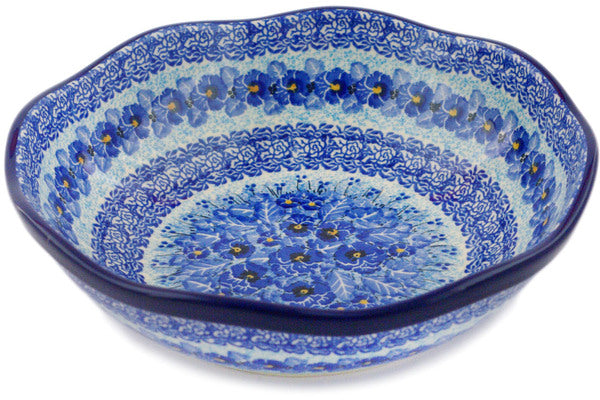 This Deep Winter 10" Scalloped Bowl was handmade and hand decorated in Boleslawiec, Poland by skilled artisans according to old traditional methods. This is a Polish pottery Signature Unikat, which means that it has been hand painted with both sponges and brushes and it is signed by the artist who painted it. Unikat pieces are the most intricate works of art. Larger Unikat items take hours of very careful work to finish. This Polish stoneware is microwave, dishwasher, freezer, and oven safe up to 480°F. It does not contain lead or cadmium. It is part of the Deep Winter Collection.