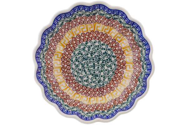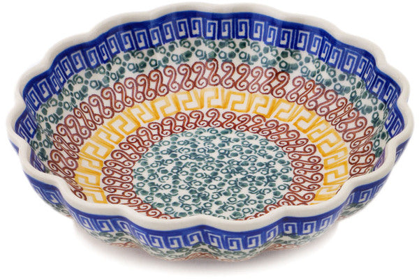 This Grecian Sea 7" Scalloped Bowl was handmade and hand decorated in Boleslawiec, Poland by skilled artisans according to old traditional methods. This Polish stoneware is microwave, dishwasher, freezer, and oven safe up to 480°F. It does not contain lead or cadmium. It is part of the Grecian Sea Collection.