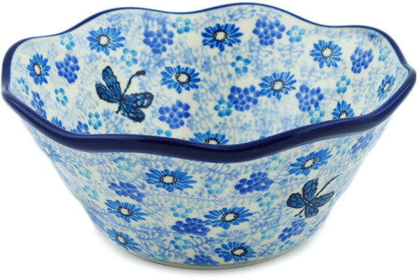 Scalloped Bowl 8" Light Blue Misty Dragonfly Theme