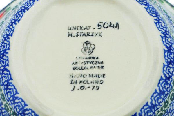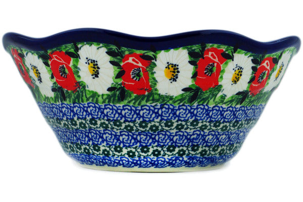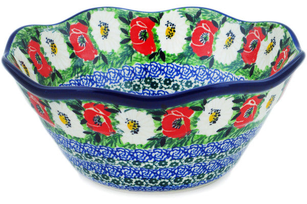 This Poppy Beauty 8" Scalloped Bowl was handmade and hand decorated in Boleslawiec, Poland by skilled artisans according to old traditional methods. This is a Polish pottery Signature Unikat, which means that it has been hand painted with both sponges and brushes and it is signed by the artist who painted it. Unikat pieces are the most intricate works of art. Larger Unikat items take hours of very careful work to finish. This Polish stoneware is microwave, dishwasher, freezer, and oven safe up to 480°F. It does not contain lead or cadmium. It is part of the Poppy Beauty Collection.