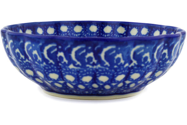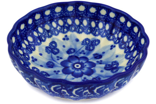 Scalloped Fluted Bowl 5" Blue Poppy Circle Theme UNIKAT