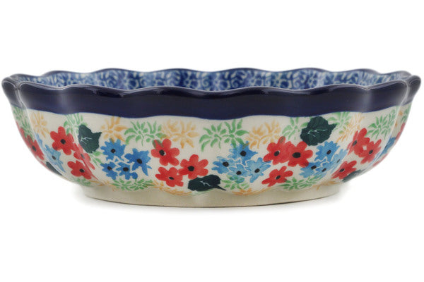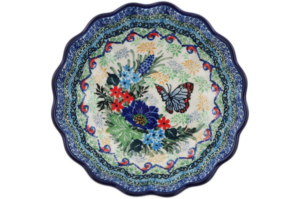 Scalloped Fluted Bowl 6" Blue Monarch Meadow Theme UNIKAT