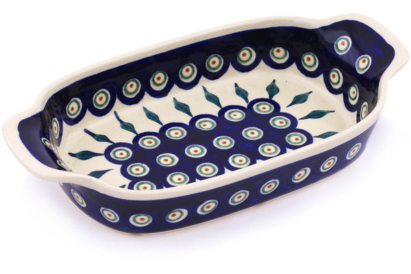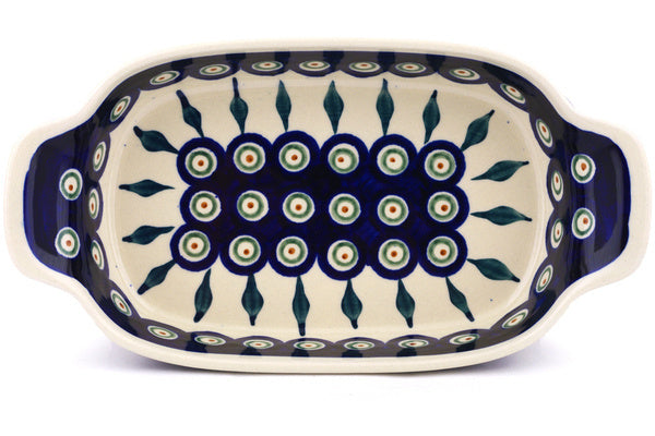 Serving Dish or Baker Small Peacock Leaves Theme