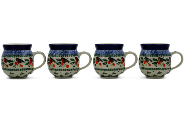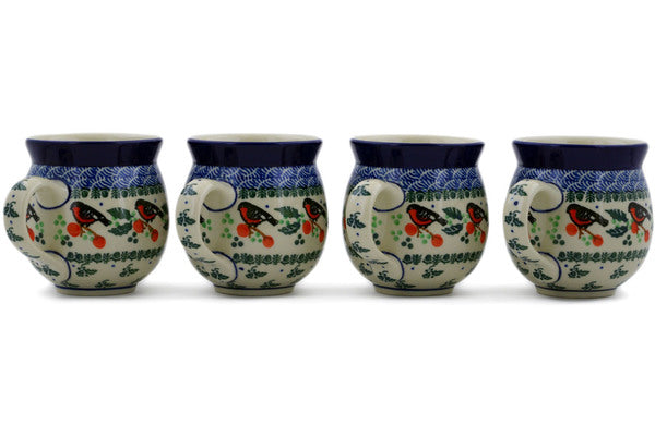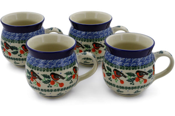Set of Four 12 oz Bubble Mugs Holly Robin Theme
