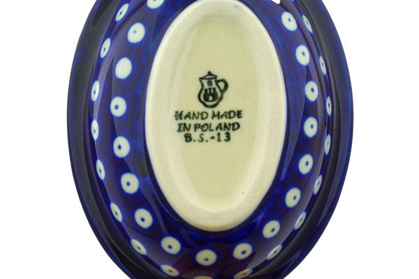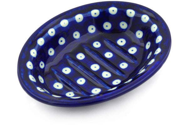 This Blue Eyes 5" Soap Dish was handmade and hand decorated in Boleslawiec, Poland by skilled artisans according to old traditional methods. This Polish stoneware is microwave, dishwasher, freezer, and oven safe up to 480°F. It does not contain lead or cadmium. It is part of the Blue Eyes Collection.