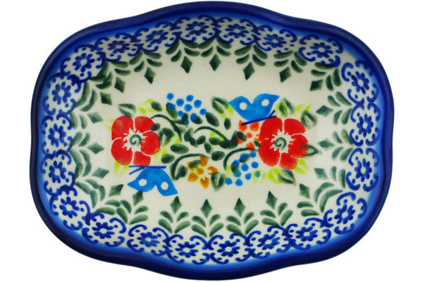 This Ring Of Meadow Flowers 5" Soap Dish was handmade and hand decorated in Boleslawiec, Poland by skilled artisans according to old traditional methods. This Polish stoneware is microwave, dishwasher, freezer, and oven safe up to 480°F. It does not contain lead or cadmium. It is part of the Ring Of Meadow Flowers Collection.