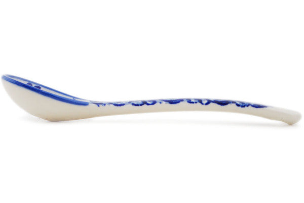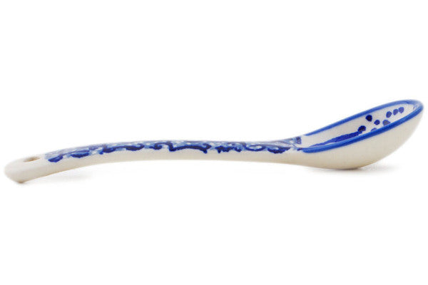This Periwinkle Sweetness 5" Spoon was handmade and hand decorated in Boleslawiec, Poland by skilled artisans according to old traditional methods. This is a Polish pottery Signature Unikat, which means that it has been hand painted with both sponges and brushes and it is signed by the artist who painted it. Unikat pieces are the most intricate works of art. Larger Unikat items take hours of very careful work to finish. This Polish stoneware is microwave, dishwasher, freezer, and oven safe up to 480°F. It does not contain lead or cadmium. It is part of the Periwinkle Sweetness Collection.