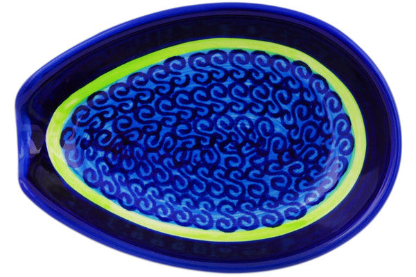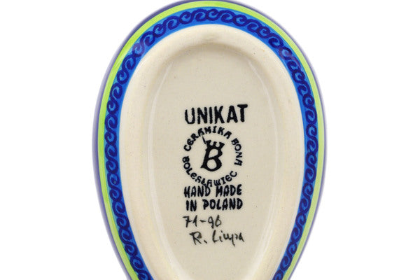 This Midnight Eclipse 5" Spoon Rest was handmade and hand decorated in Boleslawiec, Poland by skilled artisans according to old traditional methods. This Polish stoneware is microwave, dishwasher, freezer, and oven safe up to 480°F. It does not contain lead or cadmium. It is part of the Midnight Eclipse Collection.