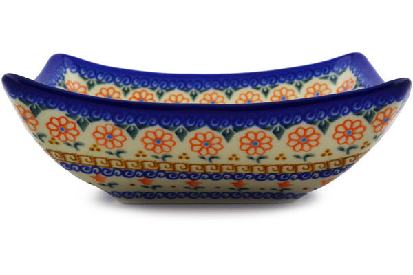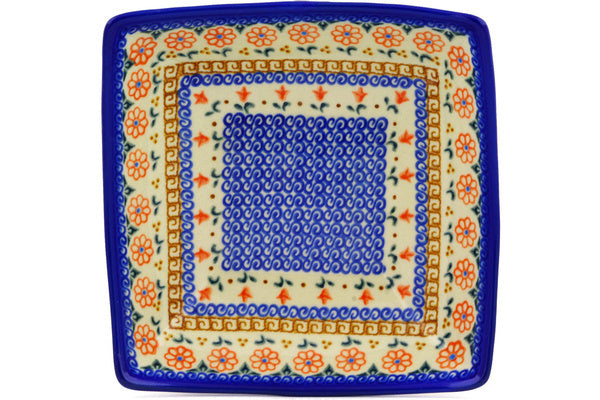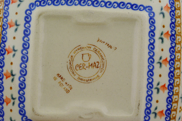 This Amarillo 8" Square Bowl was handmade and hand decorated in Boleslawiec, Poland by skilled artisans according to old traditional methods. This Polish stoneware is microwave, dishwasher, freezer, and oven safe up to 480°F. It does not contain lead or cadmium. It is part of the Amarillo Collection.