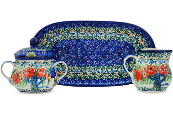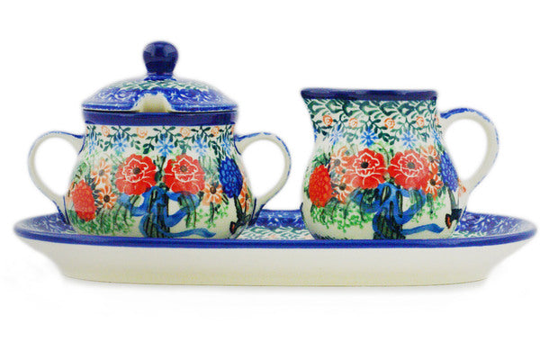 Sugar and Creamer Set 10" Hummingbird Bouquet Theme UNIKAT