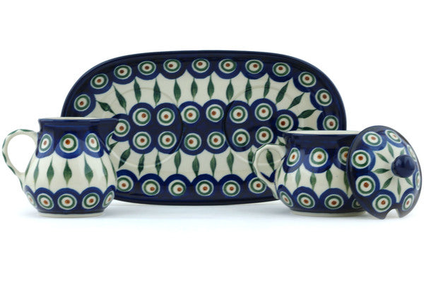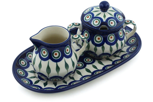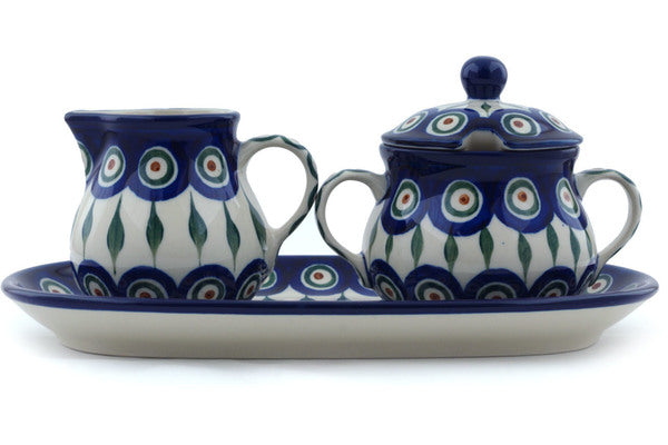 Sugar and Creamer Set 10" Peacock Leaves Theme