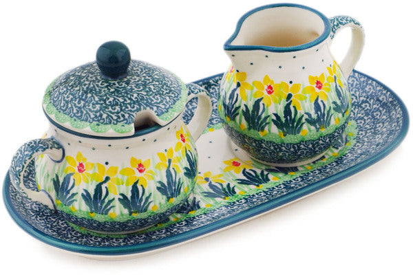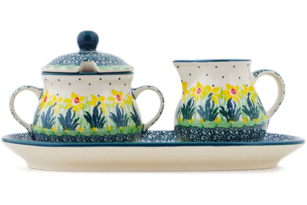 This Summer Meadow 10" Sugar and Creamer Set was handmade and hand decorated in Boleslawiec, Poland by skilled artisans according to old traditional methods. This Polish stoneware is microwave, dishwasher, freezer, and oven safe up to 480°F. It does not contain lead or cadmium. It is part of the Summer Meadow Collection.