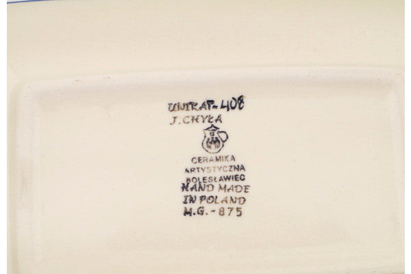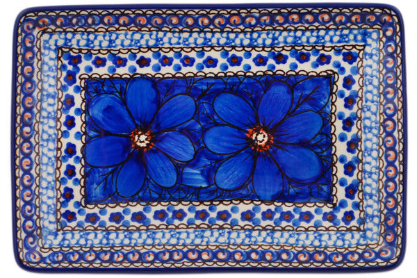 This Cobalt Poppies 8" Sushi Tray was handmade and hand decorated in Boleslawiec, Poland by skilled artisans according to old traditional methods. This is a Polish pottery Signature Unikat, which means that it has been hand painted with both sponges and brushes and it is signed by the artist who painted it. Unikat pieces are the most intricate works of art. Larger Unikat items take hours of very careful work to finish. This Polish stoneware is microwave, dishwasher, freezer, and oven safe up to 480°F. It does not contain lead or cadmium. It is part of the Cobalt Poppies Collection.