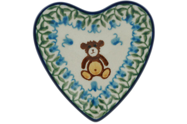 This Childrens Baby Bear 3" Tea Bag or Lemon Plate was handmade and hand decorated in Boleslawiec, Poland by skilled artisans according to old traditional methods. This Polish stoneware is microwave, dishwasher, freezer, and oven safe up to 480°F. It does not contain lead or cadmium. It is part of the Childrens Baby Bear Collection.