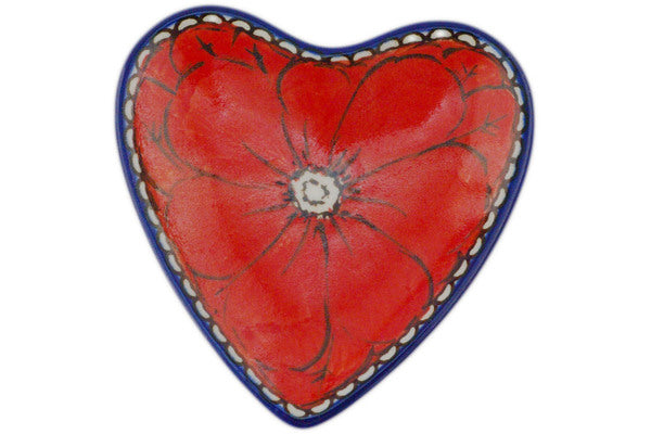 This Crimson Poppies 3" Tea Bag or Lemon Plate was handmade and hand decorated in Boleslawiec, Poland by skilled artisans according to old traditional methods. This is a Polish pottery Signature Unikat, which means that it has been hand painted with both sponges and brushes and it is signed by the artist who painted it. Unikat pieces are the most intricate works of art. Larger Unikat items take hours of very careful work to finish. This Polish stoneware is microwave, dishwasher, freezer, and oven safe up to 480°F. It does not contain lead or cadmium. It is part of the Crimson Poppies Collection.