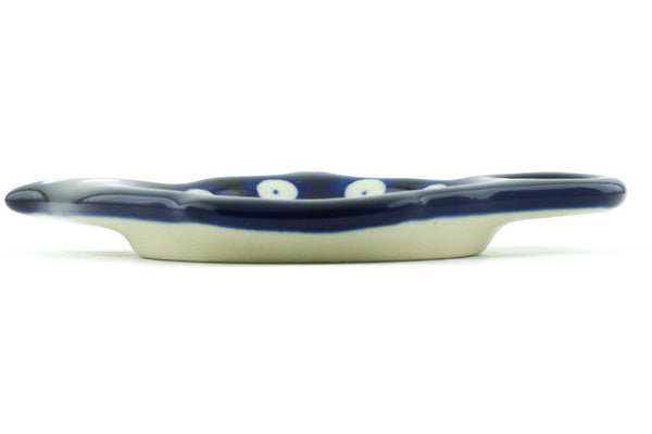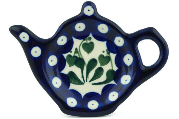 This Bleeding Heart Peacock 5" Tea Bag or Lemon Plate was handmade and hand decorated in Boleslawiec, Poland by skilled artisans according to old traditional methods. This Polish stoneware is microwave, dishwasher, freezer, and oven safe up to 480°F. It does not contain lead or cadmium. It is part of the Bleeding Heart Peacock Collection.