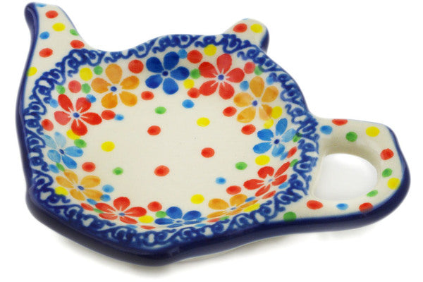 This Joy 5" Tea Bag or Lemon Plate was handmade and hand decorated in Boleslawiec, Poland by skilled artisans according to old traditional methods. This Polish stoneware is microwave, dishwasher, freezer, and oven safe up to 480°F. It does not contain lead or cadmium. It is part of the Joy Collection.