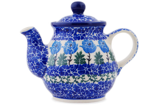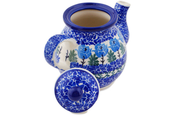 Tea or Coffee Pot 13 oz Blue Rosette Wreath Theme