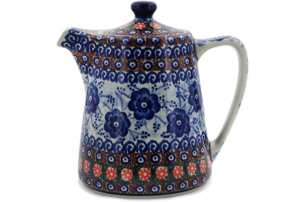 Tea or Coffee Pot 37 oz Dancing Blue Poppies Theme UNIKAT