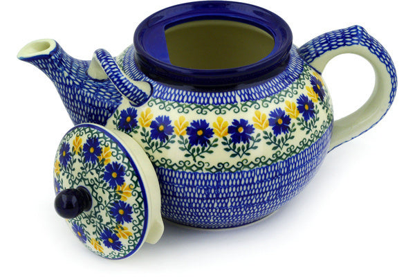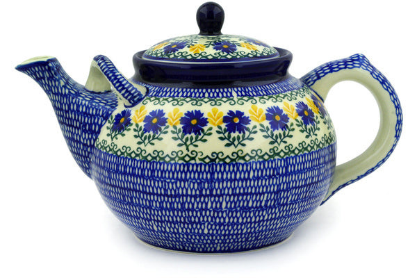 This Royal Daisy 7 cups Tea or Coffee Pot was handmade and hand decorated in Boleslawiec, Poland by skilled artisans according to old traditional methods. This Polish stoneware is microwave, dishwasher, freezer, and oven safe up to 480°F. It does not contain lead or cadmium. It is part of the Royal Daisy Collection.