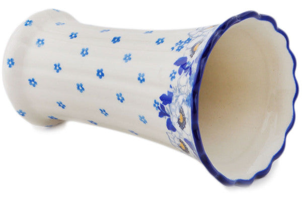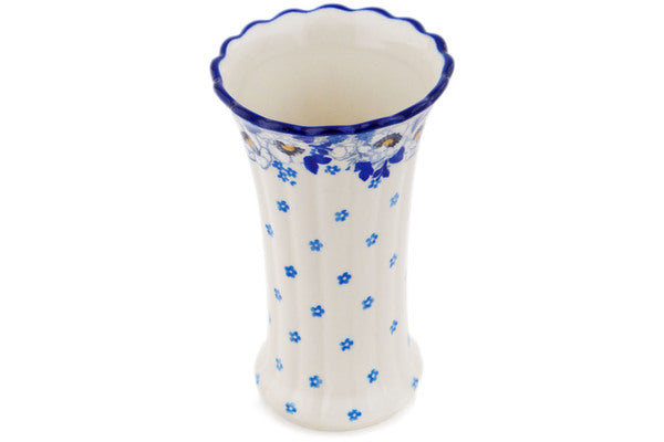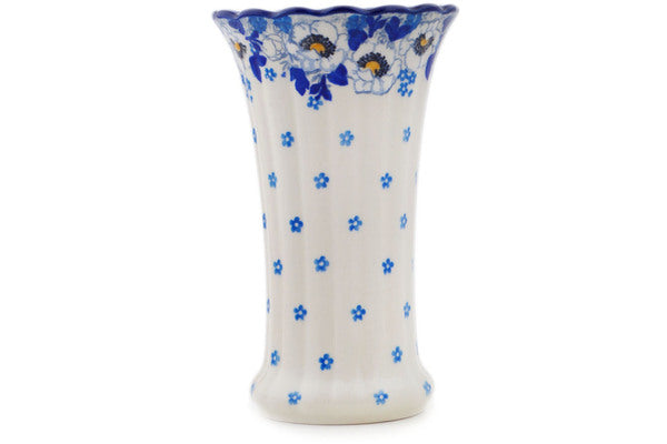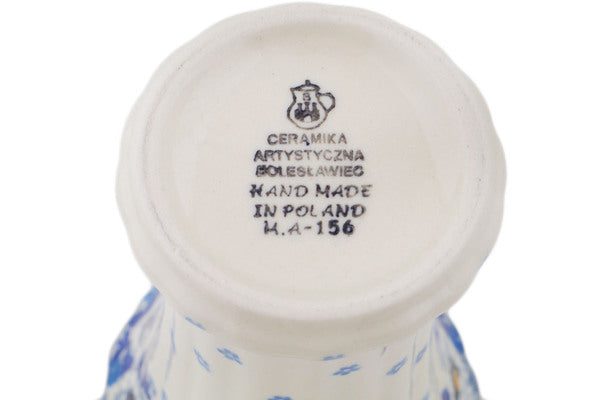 This Blue Spring 7" Vase was handmade and hand decorated in Boleslawiec, Poland by skilled artisans according to old traditional methods. This Polish stoneware is microwave, dishwasher, freezer, and oven safe up to 480°F. It does not contain lead or cadmium. It is part of the Blue Spring Collection.