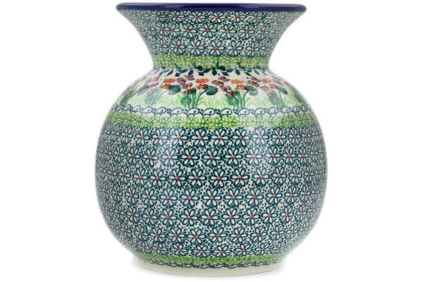 This Plum Garden 7" Vase was handmade and hand decorated in Boleslawiec, Poland by skilled artisans according to old traditional methods. This is a Polish pottery Signature Unikat, which means that it has been hand painted with both sponges and brushes and it is signed by the artist who painted it. Unikat pieces are the most intricate works of art. Larger Unikat items take hours of very careful work to finish. This Polish stoneware is microwave, dishwasher, freezer, and oven safe up to 480°F. It does not contain lead or cadmium. It is part of the Plum Garden Collection.