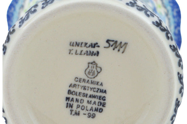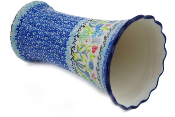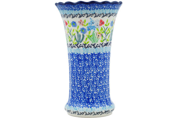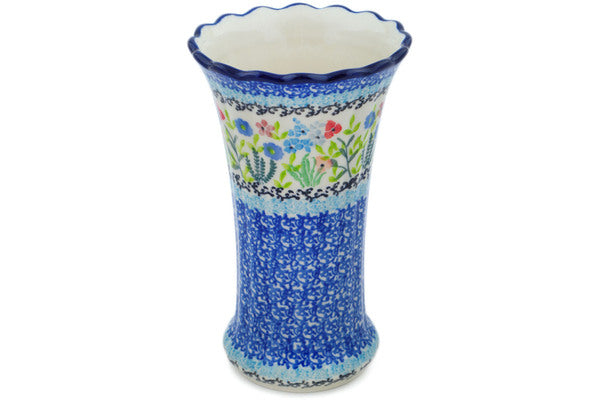 This Spring Essence 7" Vase was handmade and hand decorated in Boleslawiec, Poland by skilled artisans according to old traditional methods. This is a Polish pottery Signature Unikat, which means that it has been hand painted with both sponges and brushes and it is signed by the artist who painted it. Unikat pieces are the most intricate works of art. Larger Unikat items take hours of very careful work to finish. This Polish stoneware is microwave, dishwasher, freezer, and oven safe up to 480°F. It does not contain lead or cadmium. It is part of the Spring Essence Collection.
